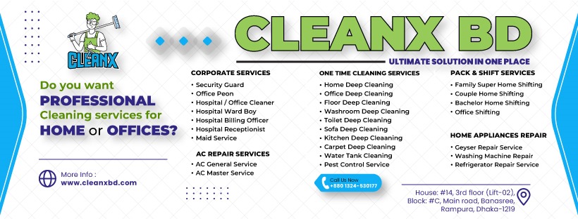 At CleanX BD, we believe a clean space is the foundation for a clear mind and a happier, healthier life. Every day, we’re driven by our commitment to deliver not just spotless results, but peace of mind for our valued clients. Our team takes pride in treating every home and workplace with care, precision, and respect, leaving behind a shine that speaks for itself. Whether it’s routine cleaning or a special project, we’re here to transform spaces and exceed expectations. Together, let’s make cleanliness a cornerstone of your comfort and productivity!